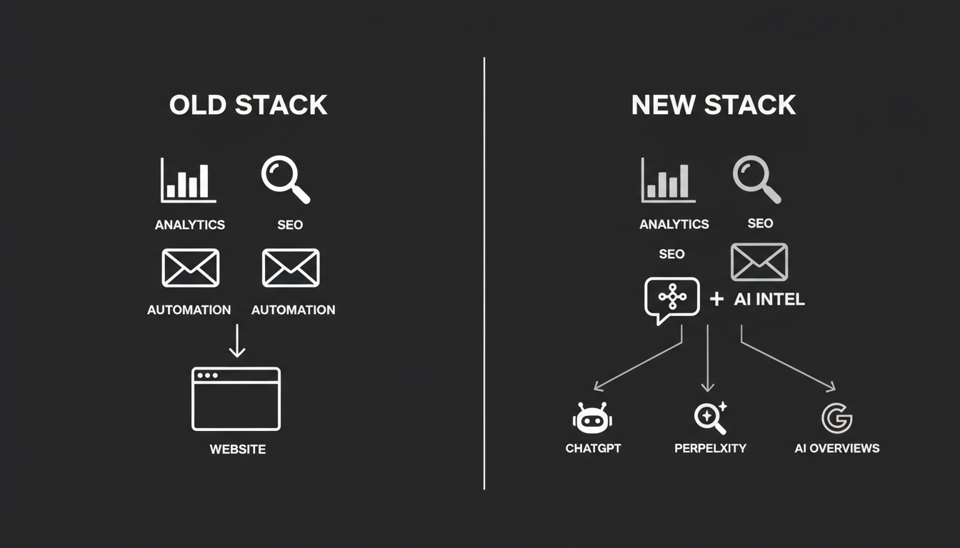 Think about when the core layers were built. SEO tools emerged to track keyword rankings on Google's ten blue links. Analytics platforms were designed to measure website traffic, page views, and conversion funnels. Marketing automation was built to nurture leads through email sequences and score them based on clicks and form fills.