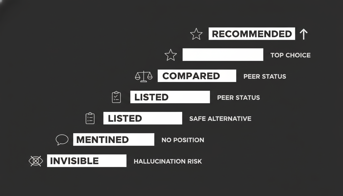 If a model mentions your brand in a list of 20 "other tools" while spending its detailed breakdown on your top competitors, you've achieved Level 2 visibility in a Level 5 world. You're filler. Not the answer.