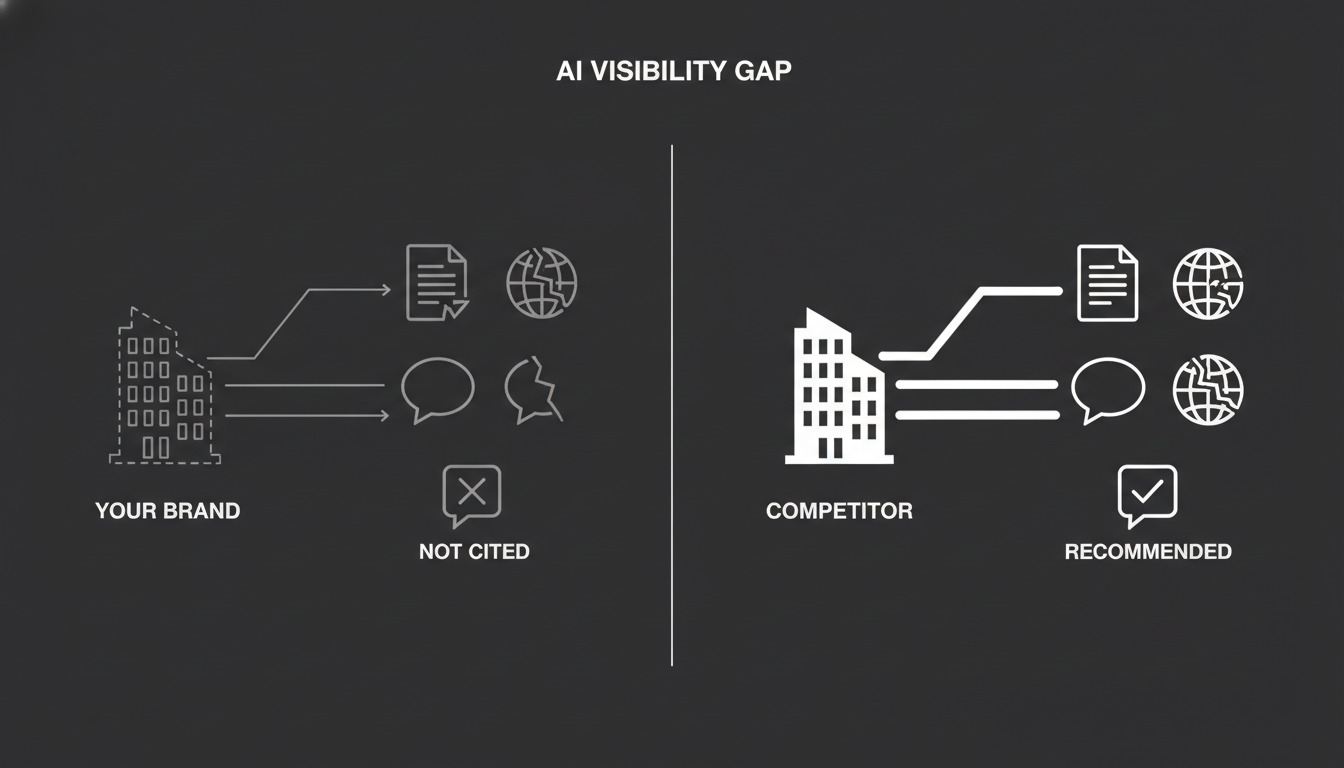 This hits differently than dropping a few spots in Google rankings. There's no page two here. No "we're still on the first page, just lower." The AI either names you or it doesn't. Either frames you as a credible option or treats you like you don't exist.