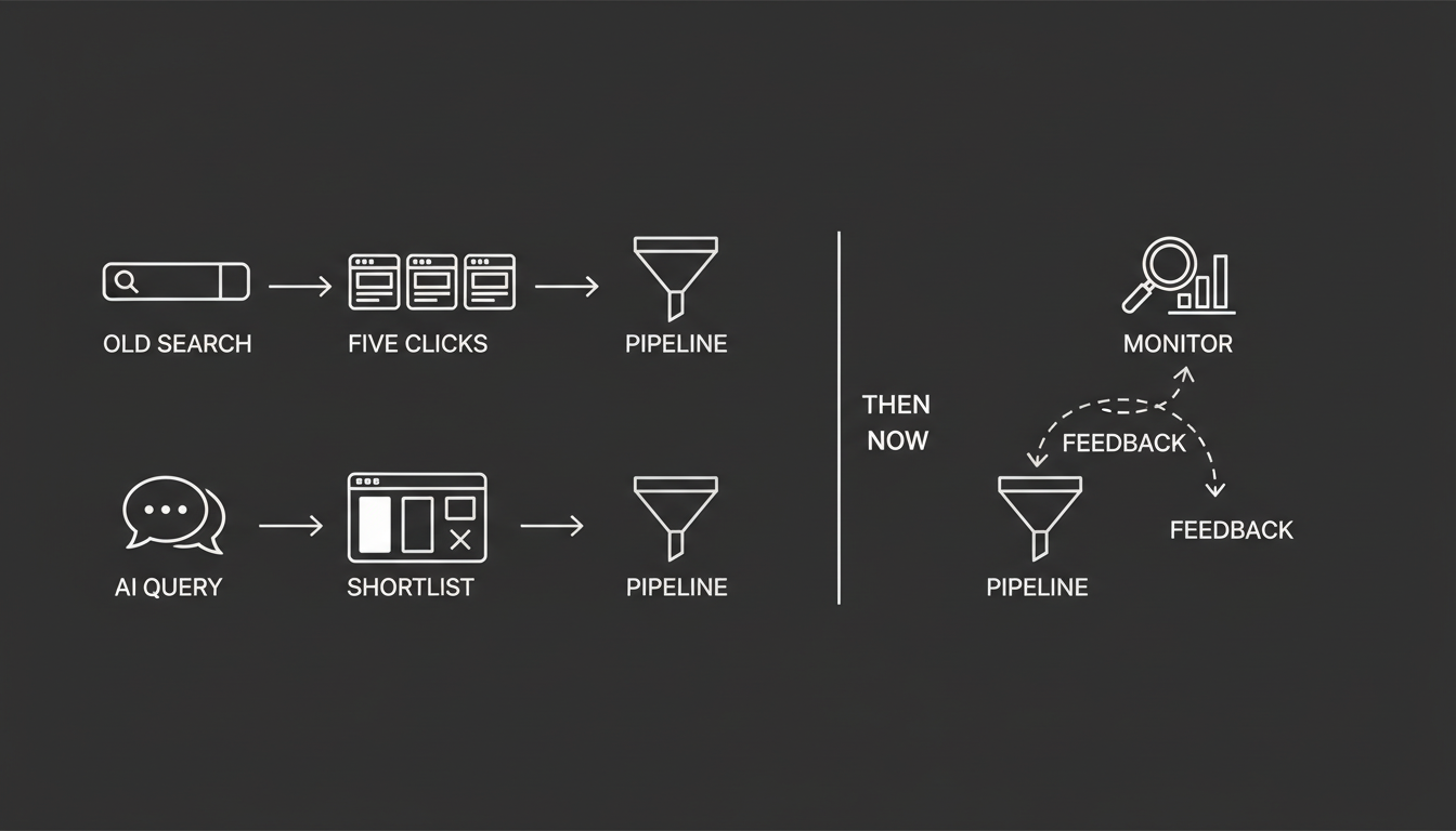 The new world: A buyer asks, "Compare the top HR platforms for remote teams," and the AI delivers a summary. You either made the cut or you didn't.